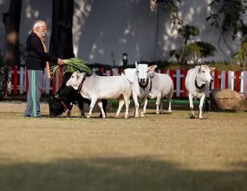 मकर संक्रांति के मौके पर पीएम मोदी ने अपने आवास पर गायों को खिलाया चारा, देशवासियों को दी शुभकामनाएं