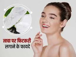 फिटकरी त्वचा से संबंधित कई समस्याओं के समाधान में सहायक है। यह घाव भरने में मदद करती है, मुंहासों को कम करती है और त्वचा की रंगत को समान बनाने में मदद करती है। इसे अक्सर शेविंग के बाद खून बहने को रोकने के लिए भी इस्तेमाल किया जाता है।