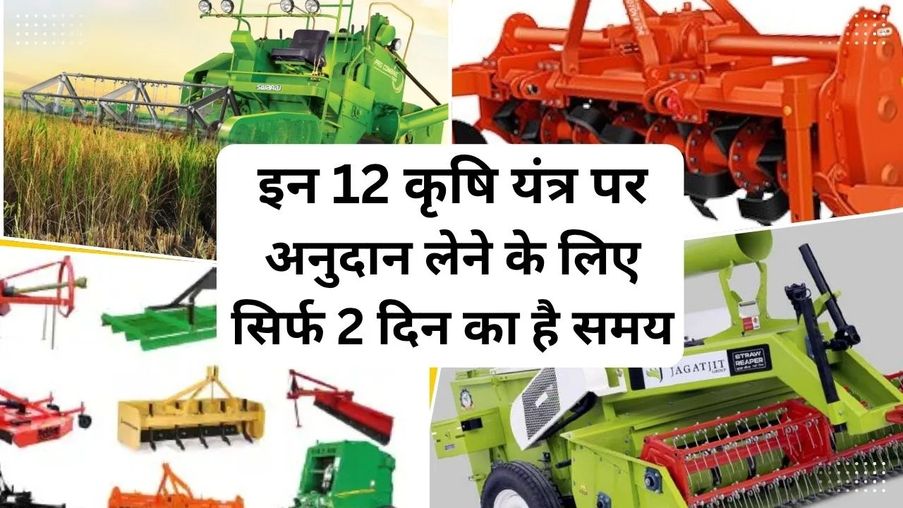 किसानों को करीब 12 कृषि यंत्र पर अनुदान मिल रहा है जिसके लिए आवेदन करने के लिए सिर्फ 2 दिन का समय बचा है तो चलिए जानते हैं पूरी जानकारी-