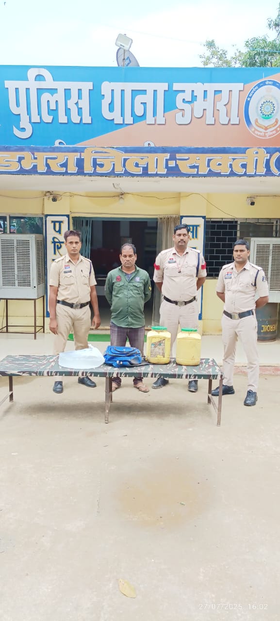 सक्ति : पुलिस अधीक्षक अंकिता शर्मा (भा.पु.से), अतिरिक्त पुलिस अधीक्षक हरीश यादव (रा.पु.से.), एवं अनुविभागीय अधिकारी पुलिस डभरा अंजली गुप्ता (रा.पु.से.) द्वारा अवैध शराब, जुआ, सट्टा, और नशीले मादक पदार्थों पर रोकथाम के लिए दिये गए कड़े निर्देश के परिपालन में थाना प्रभारी डभरा के द्वारा थाना क्षेत्र में मुखबिर तैनात किया गया था। घटना दिनांक 27.07.2025 को जरिये मुखबीर से सूचना मिला कि ग्राम फ़रस्वानी कहरा तालाब के पास एक व्यक्ति मोटर सायकल हीरो होंडा स्प्लेंडर क्रमांक सीजी 13 पी 8238 में अवैध रूप से शराब रखकर बिक्री हेतु चारपारा की ओर से ग्राम फ़रसवानी बस्ती की ओर से खैरा की ओर जा रहा है एवं ग्राम फ़रस्वानी कहरा तालाब के पास सुखीराम साहू पिता गयाराम साहू उम्र 64 साल ग्राम चांटीपाली थाना डभरा अवैध रूप से कच्ची महुआ शराब बिक्री करने हेतु अपने कब्जे में रखा है कि 02 सूचना अलग-अलग प्राप्त होने पर वरिष्ठ अधिकारियों को अवगत कराकर थाना प्रभारी द्वारा दो अलग-अलग टीम गठित कर रेड कार्यवाही हेतु रवाना किए थे मुखबिर के बताए स्थान पर जाकर रेड कार्यवाही करने पर आरोपी पदुम कुमार शतरंज पिता रूपचंद शतरंज उम्र 42 साल ग्राम चारपारा थाना मालखरौदा के कब्जे से 50 लीटर कच्ची महुआ शराब कीमती 5000 रु. एवं घटना में प्रयुक्त मोटर सायकल हीरो होंडा स्प्लेंडर क्रमांक सीजी 13 पी 8238 कीमती 20000 रु. तथा आरोपी सुखीराम साहू पिता गयाराम साहू उम्र 64 साल ग्राम चांटीपाली थाना डभरा के कब्जे से 15 लीटर कच्ची महुआ शराब कीमती 1500 रु. कुल 65 लीटर कच्ची महुआ शराब कीमती 6500 रु. को जप्त कर आरोपियों के विरूद्ध अपराध क्रमांक 240/2025, 241/2025 धारा 34 (2) आबकारी एक्ट कायम कर दिनांक 27.07 2025 को गिरफ्तार किया जाकर माननीय न्यायालय रिमाण्ड पर भेजा गया है।