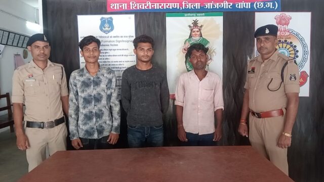 उपरोक्त कार्यवाही में निरीक्षक प्रवीण कुमार द्विवेदी थाना प्रभारी शिवरीनारायण, सउनि नरेंद्र शुक्ला आरक्षक राजेश कौशिक,अर्जुन यादव का सराहनीय योगदान रहा।