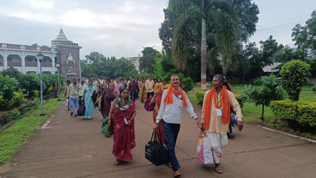बेमेतरा : छत्तीसगढ़ शासन की महत्वाकांक्षी श्री रामलला दर्शन योजना के अंतर्गत बेमेतरा जिले से चयनित 62 श्रद्धालुओं (02 अनुरक्षक सहित) का दल आज अयोध्या धाम के लिए रवाना हुआ।सुबह 7 बजे कलेक्टोरेट भवन के दृष्टि सभाकक्ष में सभी श्रद्धालुओं का स्वास्थ्य परीक्षण किया गया।इसके पश्चात 7:30 बजे सीईओ जिला पंचायत प्रेमलता ने कलेक्ट्रेट परिसर में हरी झंडी दिखाकर श्रद्धालुओं के बस को रवाना किया।इस दौरान श्रद्धालुओं को पुष्प भेंटकर उन्हें श्री रामलला दर्शन हेतु बधाई दी गई।इस मौके पर सीईओ ने सभी श्रद्धालुओं को सकुशल यात्रा की बधाई देते हुए कोई भी दिक्कत होने पर अपने सहयोगी एवं कर्मचारियों से तुरंत सम्पर्क करने का आग्रह किया।