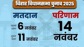 बिहार विधानसभा चुनाव 2025 : बिहार विधानसभा चुनाव की तारीख सामने आ गई है। चुनाव आयोग ने सोमवार को जानकारी दी है कि बिहार में 243 विधानसभा सीटों के लिए विधानसभा चुनाव कुल 2 चरण में आयोजित कराए जाएंगे। चुनाव आयोग ने बताया है कि बिहार में 6 नवंबर और 11 नवंबर को वोटिंग होगी। चुनाव आयोग के मुताबिक, विधानसभा चुनाव का रिजल्ट 14 नवंबर की तारीख को जारी किया जाएगा। पहले चरण में 121 सीटों और दूसरे चरण में 122 सीटों पर वोटिंग होगी।