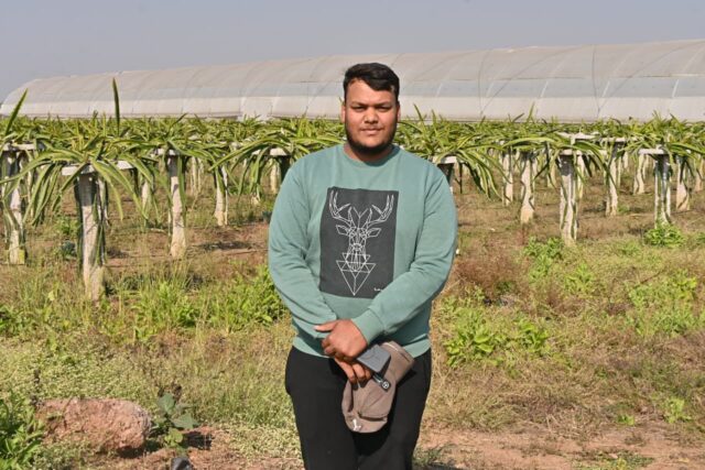 धमतरी : धमतरी जिले के ग्राम बगौद के प्रगतिशील किसान श्री साहिल बैस आधुनिक और लाभकारी खेती की दिशा में एक प्रेरक उदाहरण प्रस्तुत कर रहे हैं। उन्होंने परंपरागत फसलों से आगे बढ़ते हुए अपने खेत में ड्रेगन फ्रूट (Dragon Fruit) की खेती अपनाई है। वर्तमान में श्री बैस ने लगभग दो एकड़ क्षेत्र में ड्रेगन फ्रूट का रोपण किया है, जो जिले में नवाचारी बागवानी का सशक्त उदाहरण है। यह कैक्टस परिवार का पौधा है| किसान साहिल बैस बताते हैं कि ड्रेगन फ्रूट की खेती उन्होंने योजनाबद्ध तरीके से शुरू की। एक एकड़ में लगभग 1600–1800 पौधे कटिंग कर सीमेंट/लोहे के खंभों पर चढ़ाकर उगाया । प्रारंभिक वर्ष में संरचना निर्माण, पौध क्रय एवं देखरेख पर निवेश अधिक होने के कारण पिछले वर्ष “नो प्रॉफिट-नो लॉस” की स्थिति रही, किंतु पौधों के परिपक्व होने के साथ ही आने वाले वर्षों में अच्छा मुनाफा मिलने की पूरी संभावना है।