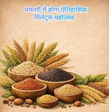 धमतरी, 4 जनवरी 2026 : जिले में पोषण सुरक्षा, किसान समृद्धि एवं सतत कृषि को बढ़ावा देने की दिशा में एक ऐतिहासिक पहल करते हुए जिला प्रशासन द्वारा पहली बार “मिलेट्स महोत्सव” का आयोजन किया जा रहा है। कलेक्टर अबिनाश मिश्रा की विशेष पहल पर यह आयोजन 5 जनवरी 2026 को प्रातः 10 बजे कलेक्ट्रेट सभाकक्ष में आयोजित होगा।
