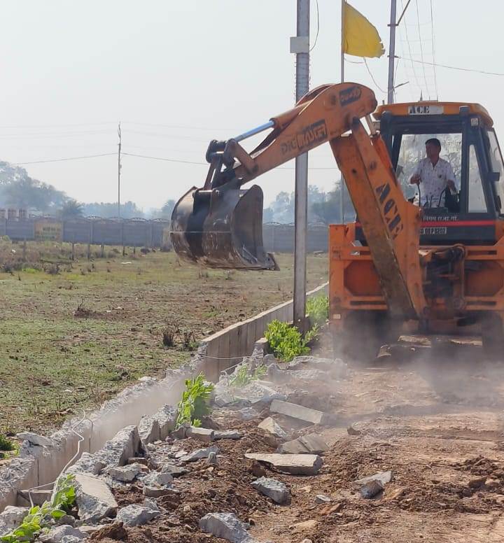 प्रशासनिक टीम ने मौके पर पहुंचकर बजरंगपुर नवागांव क्षेत्र में अवैध रूप से की जा रही प्लाटिंग तथा शासकीय भूमि पर किए गए अतिक्रमण को चिन्हित करते हुए जेसीबी मशीन से नाली और सड़क को तोड़ा गया। जिसमें खसरा नंबर 213/112 रकबा 0.009 हेक्टेयर, खसरा नंबर 213/113 रकबा 0.030 हेक्टेयर, खसरा नंबर 213/114 रकबा 0.029 हेक्टेयर, खसरा नंबर 213/115 रकबा 0.047 हेक्टेयर, खसरा नंबर 213/116 रकबा 0.034 हेक्टेयर, खसरा नंबर 213/117 रकबा 0.0086 हेक्टेयर, खसरा नंबर 213/118 रकबा 0.0092 हेक्टेयर एवं खसरा नंबर 213/119 रकबा 0.0256 हेक्टेयर में अवैध प्लाटिंग तथा शासकीय भूमि खसरा नंबर 213/1/ख/1 रकबा 0.127 एवं खसरा नंबर 213/107 रकबा 0.142 हेक्टेयर में मोरजध्वज देवांगन द्वारा नाली और सड़क निर्माण कर अतिक्रमण करते हुए कॉलोनी निर्माण किया जा रहा था। जिला प्रशासन की टीम मौके में पहुंचकर नाली और सड़क को जेसीबी मशीन से तोडफ़ोड़ किया गया। इस दौरान अवैध प्लाटिंग एवं अतिक्रमण करने वालों को भविष्य में शासकीय भूमि पर किसी भी प्रकार का अतिक्रमण या अवैध निर्माण नहीं करने की हिदायत दी गई। जिले में अवैध प्लाटिंग करने वालों और शासकीय भूमि पर अतिक्रमण करने वालों के विरूद्ध निरंतर कार्यवाही किया जा रहा है।