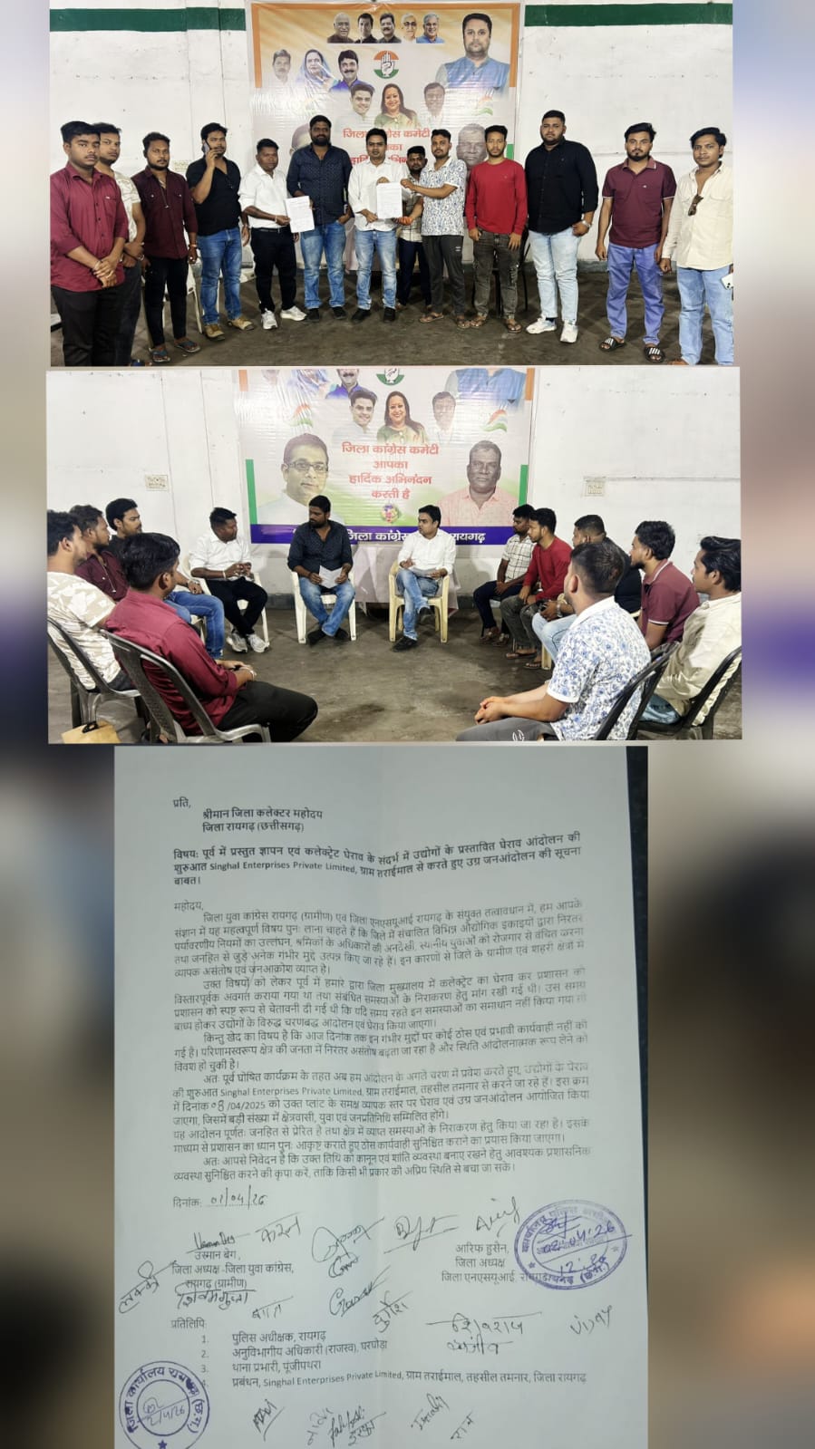 इस प्रस्तावित आंदोलन को लेकर पहले जिला युवा कांग्रेस एवं जिला एनएसयूआई के जिला कार्यालय में पदाधिकारियों और कार्यकर्ताओं की महत्वपूर्ण बैठक आयोजित की गई, जिसमें जिलेभर से मिल रही शिकायतों, स्थानीय युवाओं की बेरोजगारी, श्रमिक शोषण, प्रदूषण और जनहित के मुद्दों पर विस्तृत चर्चा की गई। बैठक में सर्वसम्मति से यह निर्णय लिया गया कि अब उद्योगों के खिलाफ चरणबद्ध जनआंदोलन शुरू किया जाएगा।