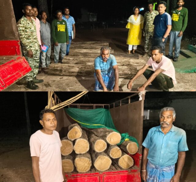कसडोल:वनमण्डलाधिकारी धम्मशील गणवीर के निर्देशानुसार अर्जुनी वन परिक्षेत्र अंतर्गत वन विभाग द्वारा अवैध सागौन लकड़ी परिवहन के विरुद्ध प्रभावी कार्रवाई करते हुए महिंद्रा जीतो प्लस वाहन को सागौन लट्ठों के साथ जब्त किया गया। आरोपियों के विरुद्ध प्रकरण दर्ज कर कार्यवाही क़ी जा रही है।वन विभाग को पूर्व में प्राप्त गुप्त सूचना एवं सतर्क निगरानी के आधार पर संबंधित स्टाफ को अलर्ट मोड में रखा गया था। इसी क्रम में 8 अप्रैल को रात्रि लगभग 11:30 बजे बंगलापाली के समीप दबिश देकर आरोपियों को लकड़ी सहित रंगे हाथों पकड़ा गया। इस प्रकरण में गंगाराम सागर (महकम), शिवप्रसाद केवट (सोनाखान), अंजोर साहू (मानाकोनी), कैलाश यादव (सोनाखान) एवं भुनेश्वर पटेल (महकम) को पकड़ा गया। जब्त वन उपज एवं वाहन को विधिवत अभिरक्षा में लेते हुए आरोपियों के विरुद्ध वन अपराध प्रकरण क्रमांक पंजीबद्ध कर नियमानुसार कार्रवाई की जा रही है।