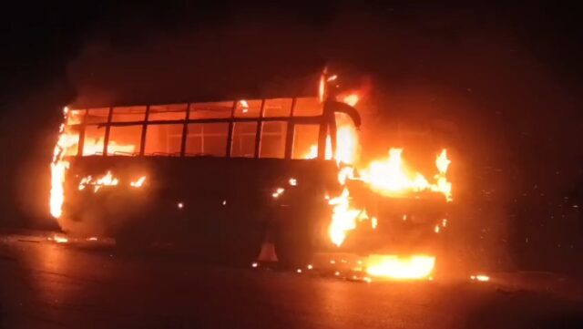 जानकारी के मुताबिक, शर्मा ट्रेवल्स (CG 07 E 1171) की बस बारातियों को कांकेर जिले के अरौद गांव से लेकर बालोद जिले के बड़गांव आ रही थी. जैसे ही बस पुरुर थाना क्षेत्र के जगतरा मंदिर के पास पहुंची अचानक आग लग गई. गनीमत रही कि बस में मौजूद लोगों ने किसी तरह बाहर निकलकर अपनी जान बचाई, जिससे जनहानि होने से टल गई.